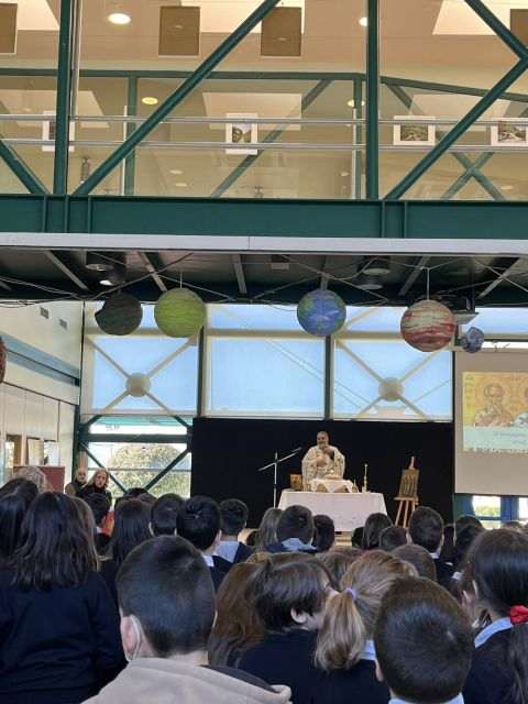 Επίσης, παρακολούθησαν ομιλία για τη ζωή και το έργο των τριών Μεγάλων Πατέρων και Οικουμενικών Διδασκάλων από τον θεολόγο τού Αρσακείου Γυμνασίου και Λυκείου, κ. Μιλτιάδη Σγουρίδη, μια απλή αλλά με δυνατά μηνύματα παρουσίαση.