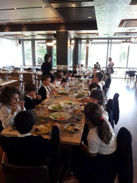 Στη συνέχεια οι μαθητές επισκέφθηκαν το εστιατόριο«Όμιλος», όπου απόλαυσαν ένα μεσημεριανό γεύμα. Στόχος ήταν τα παιδιά να μάθουν βιωματικά την αξία τού μεσημεριανού γεύματος, καθώς και να αποκτήσουν σωστούς τρόπους συμπεριφοράς σε ένα εστιατόριο.