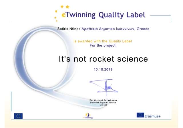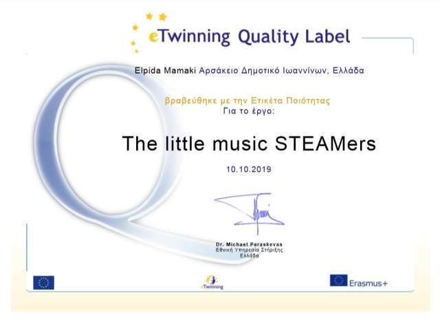 Για τέταρτη συνεχή χρονιά οι μαθητές και οι εκπαιδευτικοί τού Αρσακείου Δημοτικού Ιωαννίνων βραβεύθηκαν με την Εθνική Ετικέτα Ποιότητας για το υψηλό επίπεδο των e-Twinning έργων που υλοποίησαν κατά το σχολικό έτος 2018-2019.
