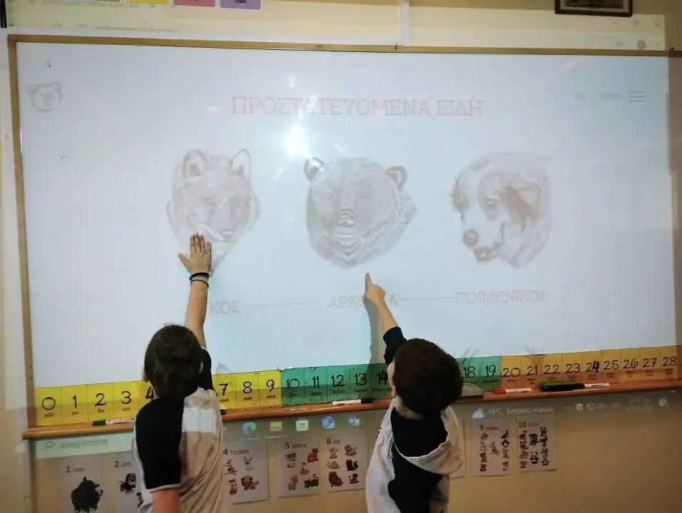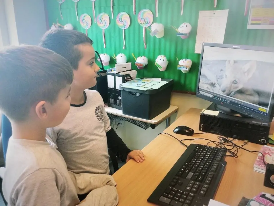 Συγκεκριμένα, τα πρωτάκια υιοθέτησαν, μέσω τής παροχής τής οικονομικής τους βοήθειας, τη Τζένη, η οποία βρέθηκε κοντά στα Νέα Μουδανιά Χαλκιδικής ορφανή. Μεταφέρθηκε στο καταφύγιο τού “Αρκτούρου” και εντάχθηκε στο πρόγραμμα περίθαλψης και επανένταξης. Έως ότου καταφέρει να επανενταχθεί, οι μαθήτριες και οι μαθητές μας θα συμβάλλουν στη διαβίωσή της στο καταφύγιο. Με την υιοθεσία αυτή θα καλυφθεί μέρος των εξόδων διατροφής και φροντίδας τής Τζένης για έναν χρόνο και τα παιδιά θα συμβάλουν στην υποστήριξη τού έργου τού “Αρκτούρου” για την προστασία τού λύκου και των βιοτόπων του. Στο πλαίσιο αυτής τής δράσης η Α΄ τάξη είχε την ευκαιρία να συνδεθεί διαδικτυακά με την οργάνωση τού “Αρκτούρου”, τη Δευτέρα 3 Νοεμβρίου 2025, και το καταφύγιο από το οποίο ενημερώθηκε για τη διαβίωση των ζώων που φιλοξενεί η οργάνωση και, φυσικά, για τη Τζένη.