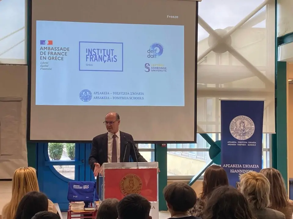 Με χαρά υποδεχθήκαμε, την Πέμπτη 20 Νοεμβρίου 2025, το πρωί, στον χώρο εκδηλώσεων των Αρσακείων Σχολείων Ιωαννίνων, τον Διευθυντή τού Τμήματος Εξετάσεων και Πιστοποιήσεων τού Γαλλικού Ινστιτούτου κ. Νικόλαο Χριστοδούλου και τον Αναπληρωτή Διευθυντή τού Τμήματος κ. Δημήτρη Ματσούκα.