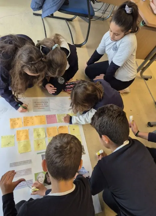 Από την ελληνική μυθολογία και τον Προμηθέα έως τους άθλους τού Ηρακλή, και από την ανθρωπολόγο Jane Goodall έως τις σύγχρονες επιστημονικές και καλλιτεχνικές προσεγγίσεις, τα παιδιά εργάστηκαν με ενθουσιασμό αξιοποιώντας βιβλία και ιστορικές πηγές, τις εικαστικές τέχνες, την προσωπική έκφραση και εργαλεία Τεχνητής Νοημοσύνης.