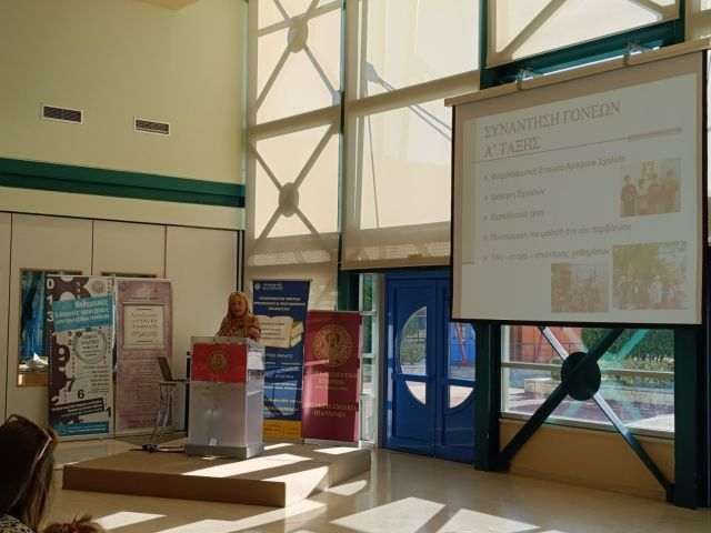Ακολούθησε ομιλία τής ψυχολόγου των Αρσακείων Σχολείων Ιωαννίνων κ. Ναταλίας-Αντιγόνης Τζούμα για τον ρόλο των Συμβουλευτικών Υπηρεσιών τής Φ.Ε. στο εκπαιδευτικό και μορφωτικό έργο των Σχολείων, σε επίπεδο πρωτοβάθμιας ενδοσχολικής προληπτικής και θεραπευτικής ψυχικής υγείας.