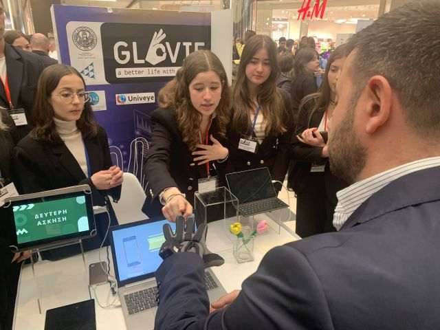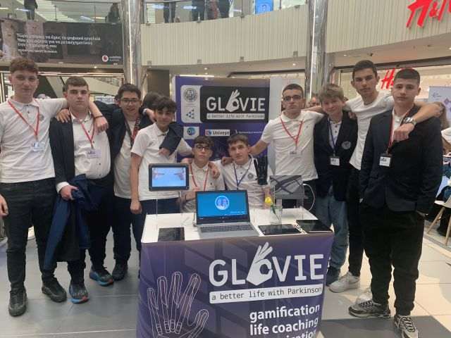 Η εικονική επιχείρηση των μαθητών του Αρσακείου Γυμνασίου Ιωαννίνων, η οποία παρουσιάστηκε στην έκθεση, φέρει την επωνυμία “Glovie” και αφορά στη δημιουργία μιας έξυπνης εφαρμογής αξιολόγησης και ενδυνάμωσης των ασθενών που πάσχουν από Parkinson.