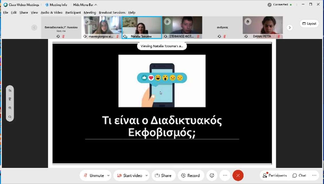 Οι μαθητές τής Α΄ τάξης τού Αρσακείου Γυμνασίου Ιωαννίνων, την Τετάρτη 31 Μαρτίου 2021, συμμετείχαν σε δίωρη δράση ευαισθητοποίησης με θέμα “Θετική διαδικτυακή συμπεριφορά – Πρόληψη διαδικτυακού εκφοβισμού” που υλοποιήθηκε από την ψυχολόγο τού Σχολείου κ. Ναταλία Τζούμα.