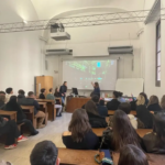 Τη δεύτερη ημέρα οι μαθητές επισκέφθηκαν την Μπολόνια και το ιστορικό Πανεπιστήμιο της πόλης, το οποίο διεκδικεί τον τίτλο του αρχαιότερου στον δυτικό κόσμο. Την ομάδα μαθητών και καθηγητών του Αρσακείου Γενικού Λυκείου υποδέχτηκε στις πύλες του Πανεπιστημίου η Καθηγήτρια του Τμήματος Κλασικής Φιλολογίας και Ιταλικών Σπουδών, κυρία Chiara Gianollo. Η κυρία Gianollo αφού παρουσίασε ιστορικά στοιχεία σχετικά με την ίδρυση και τη μακραίωνη ιστορία του Πανεπιστημίου, ξενάγησε την ομάδα στους χώρους του, εστιάζοντας ιδιαίτερα σε αγάλματα και στήλες που μνημονεύουν σημαντικές προσωπικότητες που δίδαξαν ή μαθήτευσαν ανά τους αιώνες στο Ίδρυμα. Στη συνέχεια, μαθητές και εκπαιδευτικοί είχαν την τιμή να γίνουν δεκτοί στους χώρους του Τμήματος από την Τακτική Καθηγήτρια Κλασικής Φιλολογίας και Ιταλικών Σπουδών, κυρία Valentina Garulli και απο τον Αναπληρωτή Καθηγητή Ελληνικής Γλώσσας και Λογοτεχνίας, κύριο Marco Ercoles. Η κυρία Garulli και ο κύριος Ercoles, αλλά και μεταπτυχιακές φοιτήτριες του Τμήματος περιέγραψαν τον τρόπο με τον οποίο διδάσκονται τα Αρχαία Ελληνικά και τα Λατινικά, δίνοντας έμφαση στις καινοτόμες μεθόδους που αξιοποιούνται στο Πανεπιστήμιο, αλλά και στην προσπάθεια που καταβάλλεται, μέσω δράσεων και προγραμμάτων, να γίνουν τα αρχαία ελληνικά κείμενα και τα διαχρονικά μηνύματα που αυτά μεταφέρουν κτήμα όλο και περισσότερων ανθρώπων και ιδιαίτερα όσων δεν έχουν προηγούμενη επαφή με τις κλασικές σπουδές. Στο πλαίσιο της στενής συνεργασίας του Τμήματος με Λύκεια της Ιταλίας, συζητήθηκε και η πιθανότητα μελλοντικής συνεργασίας με το Αρσάκειο Γενικό Λύκειο Ιωαννίνων σε κάποια δράση, η οποία ήδη υλοποιείται από Πανεπιστήμιο της Μπολόνια. Η επίσκεψη αυτή προσέφερε στους μαθητές μια μοναδική ευκαιρία, ώστε να κατανοήσουν τη λειτουργία ενός κορυφαίου ακαδημαϊκού ιδρύματος, αλλά και να αντιληφθούν τη σημασία και ίσως την αναγκαιότητα μελέτης των κλασικών κειμένων.