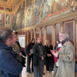 Πρώτος σταθμός η Βενετία και το Ελληνικό Ινστιτούτο Βυζαντινών και Μεταβυζαντινών Σπουδών, το οποίο επισκέφθηκε το Σχολείο κατόπιν πρόσκλησης. Κατά την επίσκεψη, οι εκπαιδευτικοί είχαν την τιμή να συναντηθούν με τον Πρόεδρο του Ινστιτούτου, Καθηγητή της Θεολογικής Σχολής του Α.Π.Θ, κ. Βασίλειο Κουκουσά, και να ξεναγηθούν από τον ίδιο στο κτήριο του παλαιού Κολλεγίου Φλαγγίνη. Ο κ. Κουκουσάς παρουσίασε σημαντικά στοιχεία για τη δράση του Ινστιτούτου, επισημαίνοντας τη σημασία της ψηφιοποίησης των αναρίθμητων, ανεκτίμητης αξίας χειρογράφων που ανήκουν στο αρχείο του Ινστιτούτου. Στη συνέχεια, οι μαθητές είχαν τη μοναδική ευκαιρία να παρακολουθήσουν ένα βιωματικό μάθημα βυζαντινής ιστορίας στο Μουσείο των Εικόνων, το οποίο φιλοξενεί μια από τις σημαντικότερες συλλογές έργων ορθόδοξης τέχνης. Στη μουσειακή συλλογή περιλαμβάνονται αριστουργήματα της βυζαντινής αγιογραφίας όπως οι εικόνες που έφερε από την Κωνσταντινούπολη, τον 15ο αιώνα, η Άννα Παλαιολογίνα Νοταρά, δεκάδες έργα ανώνυμων αλλά και επώνυμων ζωγράφων, αλλά και πολύτιμα χειρόγραφα μεταξύ των οποίων ένα περγαμηνό ευαγγελιστάριο του 13ου αιώνα, το Μυθιστόρημα του Μεγάλου Αλεξάνδρου. Για τη λειτουργία του Μουσείου Εικόνων και για τα πολύτιμα εκθέματά του μαθητές και εκπαιδευτικοί ενημερώθηκαν από τη Διευθύντρια Μουσείου, κυρία Ειρήνη Κατσιούρη, η οποία τόνισε τη συμβολή του Ιδρύματος ως προς τη διατήρηση του ελληνικού πολιτισμού και της ελληνορθόδοξης παράδοσης στη δυτική Ευρώπη. Τέλος, οι μαθητές ξεναγήθηκαν στον ναό του Αγίου Γεωργίου των Ελλήνων, στην παλαιότερη ελληνορθόδοξη εκκλησία της Δύσης και θαύμασαν την ιδιαίτερη αρχιτεκτονική του.