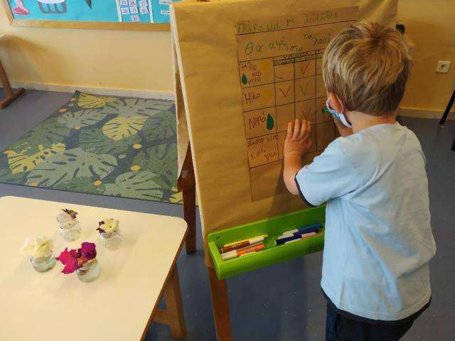 Κατά τον μήνα Μάρτιο και ενώ οι μαθητές τού Νηπιαγωγείου παρακολουθούσαν εξ αποστάσεως μαθήματα στην ψηφιακή τους τάξη, λόγω καραντίνας, η τεχνολογία και η χρήση ψηφιακών εργαλείων αξιοποιήθηκαν για δραστηριότητες που αφορούσαν στην κατανόηση τής αξίας των μελισσών και των εντόμων για τη φύση, Η επικονίαση και η αξία της για τη γονιμοποίηση των φυτών έκανε τα νήπια να κατανοήσουν πώς όσο και αν τα έντομα μπορεί να τους τρομάζουν είναι σημαντικά για τη ζωή μας. Όταν οι μικροί μας μαθητές επέστρεψαν στο Σχολείο, τον Μάιο, με ένα απλό πείραμα είδαν στην πράξη τι χρειάζεται ένα φυτό για να αναπτυχθεί.
