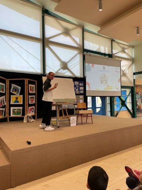 Στο τέλος τα νήπια χάρισαν στην κ. Σαμαρτζή μια μακέτα την οποία είχαν φτιάξει στην τάξη τους από ανακυκλώσιμα υλικά και που αναπαρίστανε το σχολείο τής “Τάτα”.