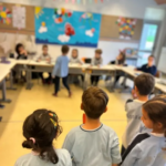 Στη συνέχεια, οι μικροί μας μαθητές και μαθήτριες επισκέφθηκαν τις τάξεις του Δημοτικού, κρατώντας μικρές κάρτες–«δικαιώματα», τις οποίες μοίρασαν στα μεγαλύτερα παιδιά. Η συμβολική αυτή δράση υπενθύμισε σε όλους ότι: « Όλοι, μικροί και μεγάλοι, έχουμε ευθύνη να προστατεύουμε και να υπερασπιζόμαστε τα δικαιώματα των παιδιών.