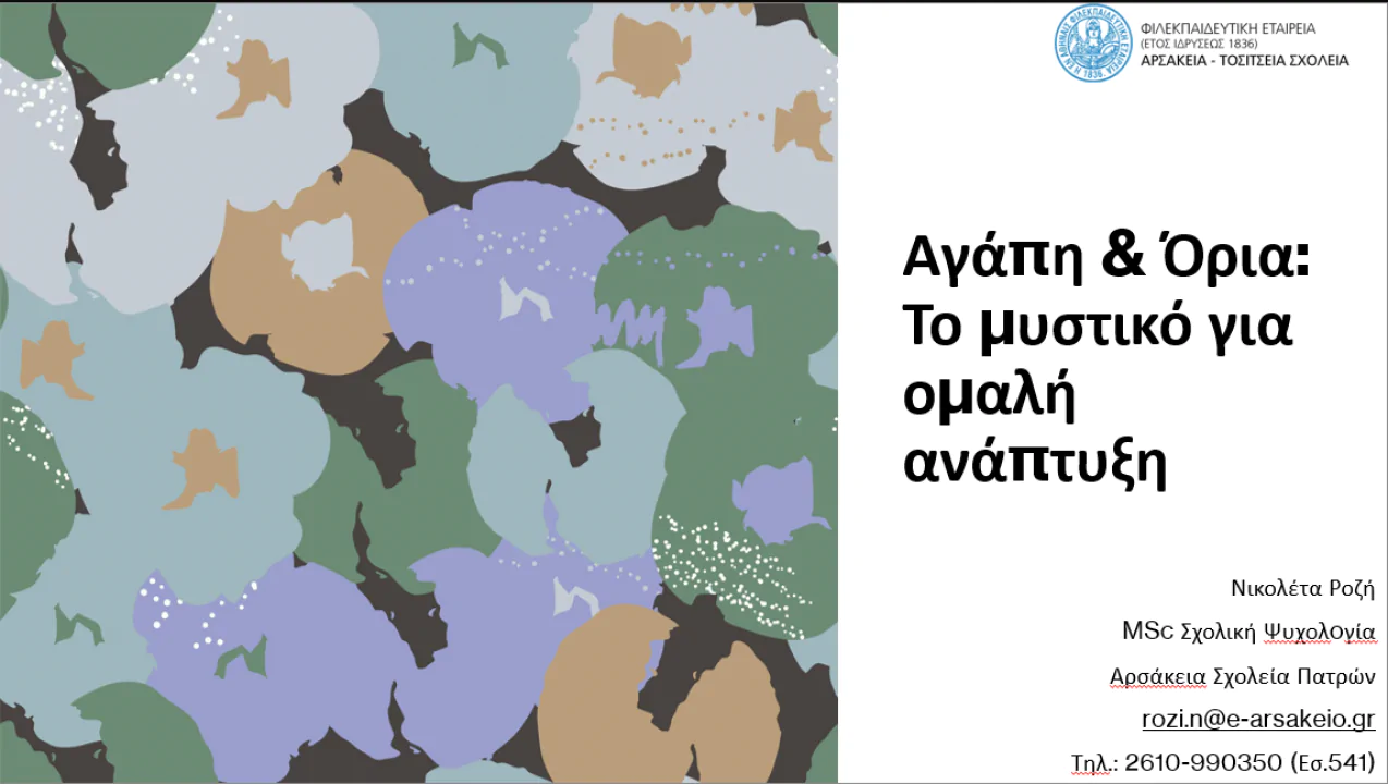 Ολοκληρώθηκε ο πρώτος κύκλος διαδικτυακών επιμορφώσεων γονέων, ο οποίος διενεργήθηκε από την Υπεύθυνη της Συμβουλευτικής Υπηρεσίας κ. Νικολέτας Ροζή σε συνεργασία με τη Διεύθυνση του Αρσακείου Δημοτικού Σχολείου Πατρών. Οι επιμορφώσεις απευθύνονταν στους γονείς όλων των τάξεων του Δημοτικού και αναφέρθηκαν σε ζητήματα που τους αφορούν.