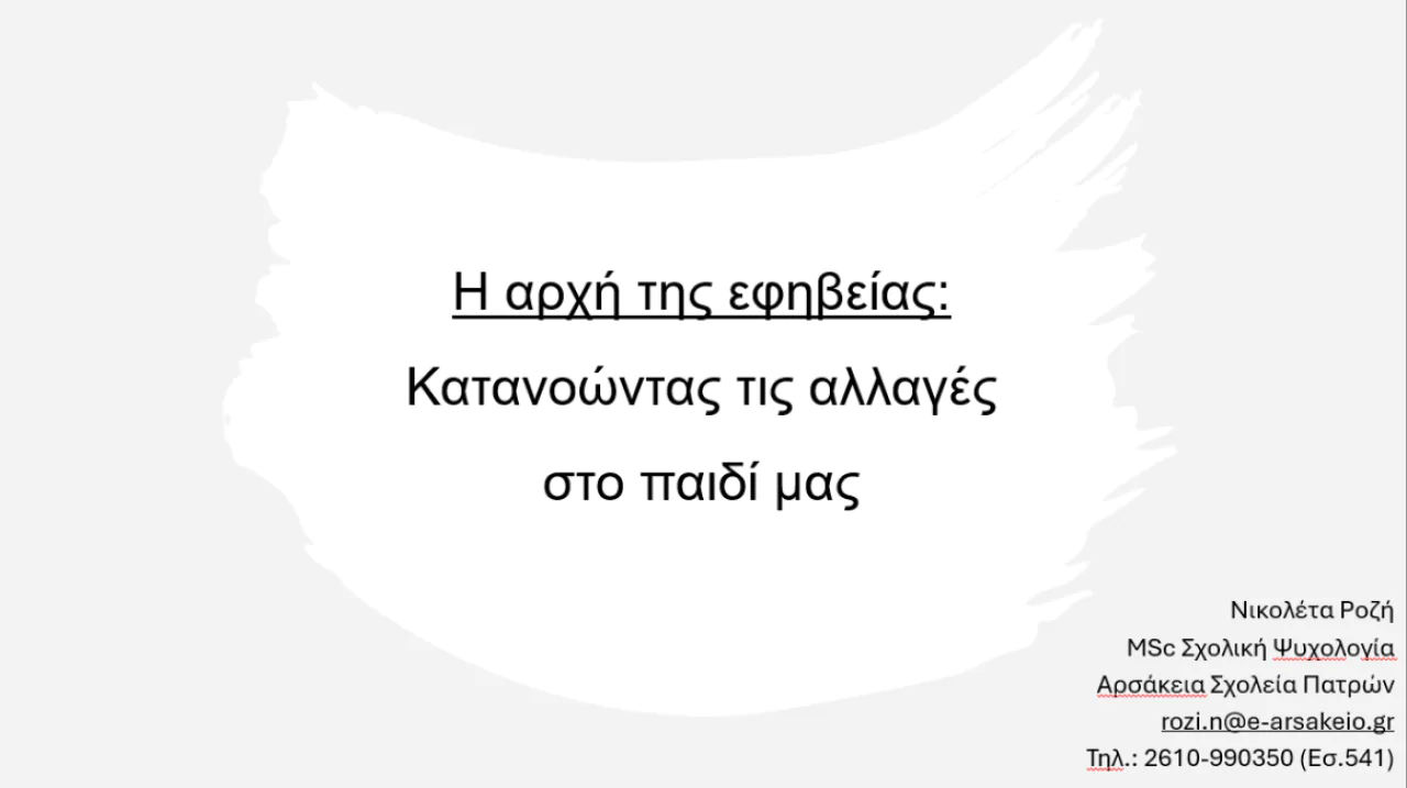 Ο κύκλος «έκλεισε» με την τρίτη επιμόρφωση τη Δευτέρα 15 Δεκεμβρίου 2025 και αφορούσε τις τάξεις Ε’ & ΣΤ’ Δημοτικού με θέμα: “Η αρχή της εφηβείας: Κατανοώντας τις αλλαγές στο παιδί μας”.