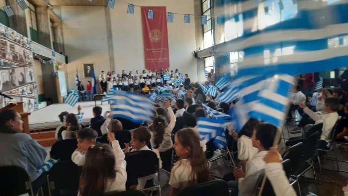 Στις 25 Οκτωβρίου 2024 οι γονείς των μαθητών παρακολούθησαν τον επίσημο εορτασμό τής 28ης Οκτωβρίου. Τον πανηγυρικό τής ημέρας εκφώνησε η δασκάλα κ. Λεολέη. Ο Διευθυντής κ. Ευάγγελος Στάθης, κατά την τελετή παράδοσης τής σημαίας στους μαθητές τής Στ΄ τάξης, μίλησε στα παιδιά για την αξία τού ιερού συμβόλου τής πατρίδας μας.