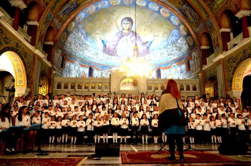 Κατάμεστος ήταν ο ναός τού Πολιούχου, το βράδυ τής Πέμπτης 20 Δεκεμβρίου 2018, όπου πλήθος συμπολιτών συνέρρευσε για να απολαύσει τις αγγελικές φωνές των 350 παιδιών όλων των βαθμίδων των Αρσακείων Σχολείων (Νηπιαγωγείου – Δημοτικού – Γυμνασίου – Λυκείου), που απέδωσαν μελωδικά το μήνυμα τής ελπίδας και τής αγάπης!