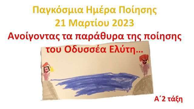 Την Τρίτη 21 Μαρτίου 2023 οι μικροί μαθητές και μαθήτριες τής Α΄2 τάξης τού Αρσακείου Δημοτικού Πατρών, με αφορμή την Παγκόσμια Ημέρα Ποίησης, γνώρισαν τον μεγάλο Έλληνα ποιητή Οδυσσέα Ελύτη.