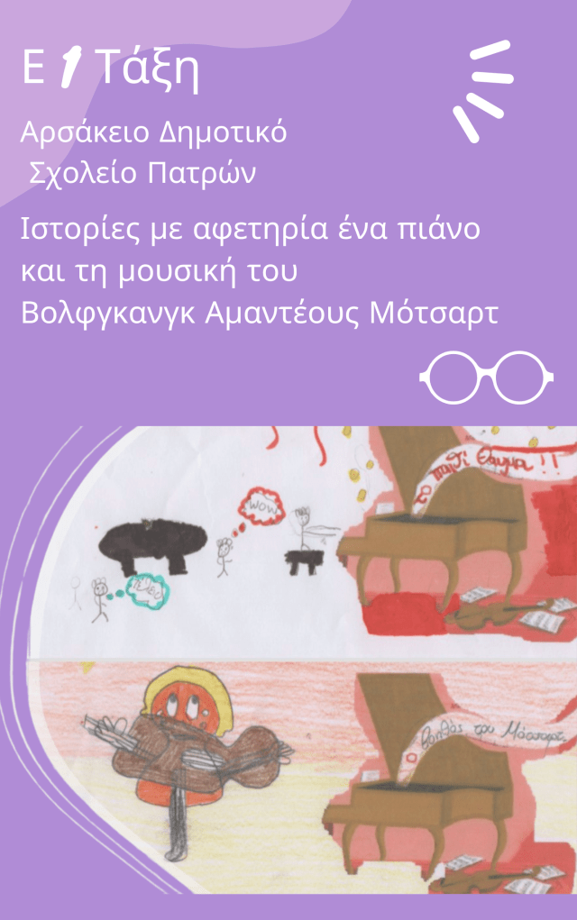 Τους δόθηκε ένας μισοτελειωμένος ζωγραφικός πίνακας και τους ζητήθηκε με έμπνευση από τη μουσική του Μότσαρτ να τον τελειώσουν και να περιγράψουν με λόγια την ιστορία του όπως ο καθένας και η καθεμιά ξεχωριστά τη φαντάστηκαν. Η δραστηριότητα, συνδυάζοντας στοιχεία από τη γλώσσα, τη μουσική και τις εικαστικές τέχνες , ενέπνευσε τους μικρούς μαθητές και τα αποτελέσματα της δημιουργίας τους αποτυπώθηκαν σε ένα πολύ όμορφο ηλεκτρονικό παραμυθοβιβλίο, δείτε το εδώ.