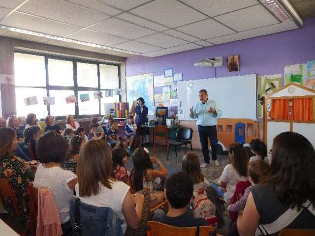 Αφορμή το βιβλίο τού συγγραφέα «Το σπίτι το δικό μας», από τις εκδόσεις Παιδική Νομική Βιβλιοθήκη και τη σειρά “Μικρά Βήματα Μεγάλοι Δρόμοι”, με θέμα τον σεβασμό στους άστεγους γείτονές μας και το δικαίωμα στην κατοικία. Μαθητές και γονείς, με την καθοδήγηση των δασκάλων κ. Μελίνας Κολαΐτη και Μαρίας Καντάνη, συζήτησαν με τον συγγραφέα και συμμετείχαν σε δημιουργικές δραστηριότητες απολαμβάνοντας, για μια ακόμη φορά, τις χαρές τής φιλαναγνωσίας.