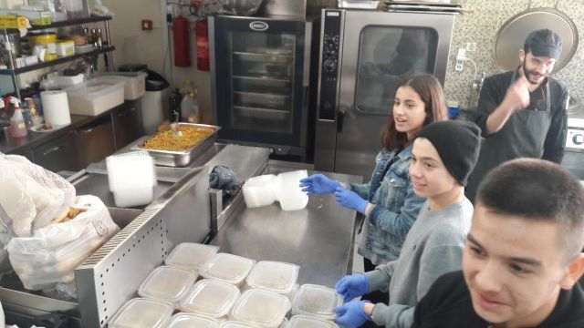 Στην αρχή, τα παιδιά μαζί με τον καθηγητή υπεύθυνο τού τμήματος κ. Σπυρίδωνα Σκιαδαρέση, θεολόγο Μ.Α.Th., επισκέφθηκαν τον χώρο τού κοινωνικού συσσιτίου «Άρτος αγάπης» στο κέντρο τής πόλης. Οι μαθητές προσέφεραν τρόφιμα τα οποία είχαν συγκεντρώσει για αυτό τον σκοπό και αμέσως όλοι τους, χωρισμένοι σε ομάδες, βοήθησαν τους εθελοντές τής δράσης στις καθημερινές τους εργασίες: προετοιμασία φαγητού (καθαρισμό λαχανικών και μαγειρικών σκευών κ.ά.), σερβίρισμα σε ειδικές συσκευασίες, μοίρασμα ψωμιού, σαλάτας κ.λπ. Ακόμη ομάδες μαθητών τοποθέτησαν τα προσφερθέντα από τους ιδίους τρόφιμα στις αποθήκες τού κοινωνικού συσσιτίου.