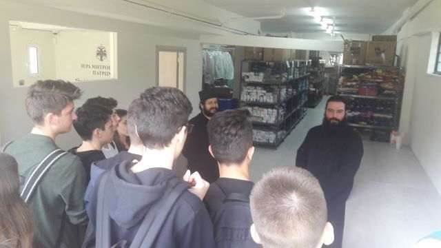 Με το πέρας τής διανομής τού φαγητού στους ενδεείς συνανθρώπους μας, οι μαθητές κατευθύνθηκαν στην άνω πόλη τής Πάτρας, εκεί όπου βρίσκονται οι κεντρικές εγκαταστάσεις φύλαξης και διανομής τροφών, αλλά και ειδών καθαριότητας και ρουχισμού «Το κελάρι τής αγάπης» (κοινωνικό παντοπωλείο). Εκεί ο υπεύθυνος ιερέας τής δράσης αρχιμανδρίτης π. Ιωακείμ Σταματόπουλος ξενάγησε τους μαθητές στον χώρο, ενημερώνοντάς τους σχετικά για τις διαδικασίες που ακολουθούνται. Αυτό που τονίστηκε και επιβεβαιώθηκε στην πράξη από τους ίδιους τους μαθητές ήταν ότι η εθελοντική προσφορά-διακονία όλων είναι πολύτιμη και για ιερό σκοπό.