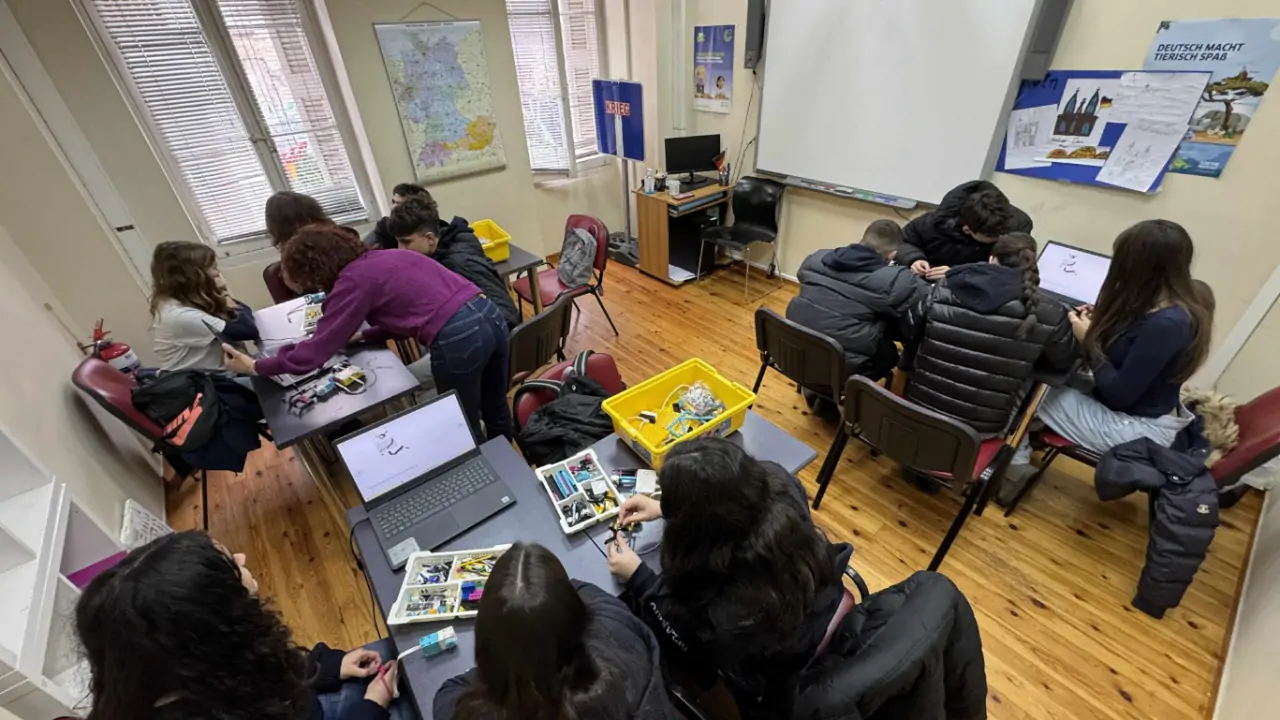 Παράλληλα, το γερμανικό τμήμα επισκέφθηκε το Goethe-Zentrum της Πάτρας και συμμετείχε σε καινοτόμο εκπαιδευτικό πρόγραμμα που συνδύαζε τη ρομποτική, τον προγραμματισμό και τη συνεργατική επίλυση προβλημάτων. Οι μαθητές αξιοποίησαν προγραμματιζόμενα ρομπότ και πλακέτες για τη δημιουργία λειτουργικών έργων, πραγματοποιώντας την κωδικοποίηση τόσο στα γερμανικά όσο και στα ελληνικά, υπό την επίβλεψη των καθηγητών Γερμανικών κ. Η. Χριστόπουλου και κ. Ε. Τερζή. Το πρόγραμμα, που υλοποιείται από το Goethe στην Ελλάδα, έχει ως στόχο την ανάπτυξη δεξιοτήτων όπως η κριτική σκέψη, η επικοινωνία, η συνεργασία και η ψηφιακή δημιουργικότητα.