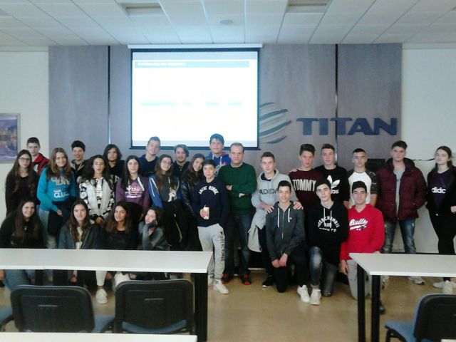 Στο πλαίσιο τού μαθήματος τής Χημείας, την Τρίτη 21 Νοεμβρίου 2017 είκοσι επτά (27) μαθητές τής Γ΄ τάξης τού Αρσακείου Γυμνασίου Πατρών επισκέφθηκαν το εργοστάσιο παραγωγής τσιμέντου ΤΙΤΑΝ, στο Δρέπανο Αχαΐας. Εκεί ενημερώθηκαν από τον προϊστάμενο τού τμήματος Ποιοτικού Ελέγχου κ. Ι. Μπασκούτα για τον τρόπο παραγωγής και συσκευασίας τού τσιμέντου, καθώς και για την ασφάλεια στο εργοστάσιο.