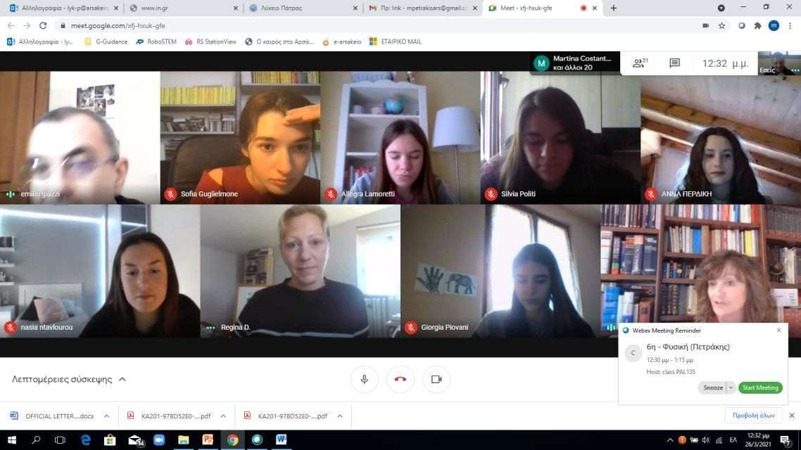Την Παρασκευή 26 Μαρτίου 2021 πραγματοποιήθηκε διαδικτυακή συνάντηση μεταξύ των δύο σχολείων με συμμετοχή αντιπροσωπιιών των μαθητών και των υπεύθυνων καθηγητών.