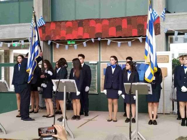 Κατά την παράδοση-παραλαβή τής Σημαίας οι Διευθυντές των Αρσακείων Γυμνασίου και Λυκείου κ. Δημήτριος Βλαχοδημητρόπουλος και Μάνος Πετράκης, απευθυνόμενοι στους μαθητές, αναφέρθηκαν στη σημασία τού ιστορικού “ΟΧΙ” και στον συμβολισμό τής Ελληνικής Σημαίας, λέγοντας: «… Σε ένα κομμάτι πανί ενσαρκώνονται οι αγώνες του έθνους μας για δημοκρατία, ειρήνη, δικαιοσύνη, αλληλεγγύη, ισονομία. Αποτελεί το φάρο και την πυξίδα στην πορεία ενός λαού… », με την επισήμανση ότι αυτός ο εορτασμός αποτελεί, πραγματικά, μια εκδήλωση μνήμης και όχι έναν απλό ακόμη εορτασμό.