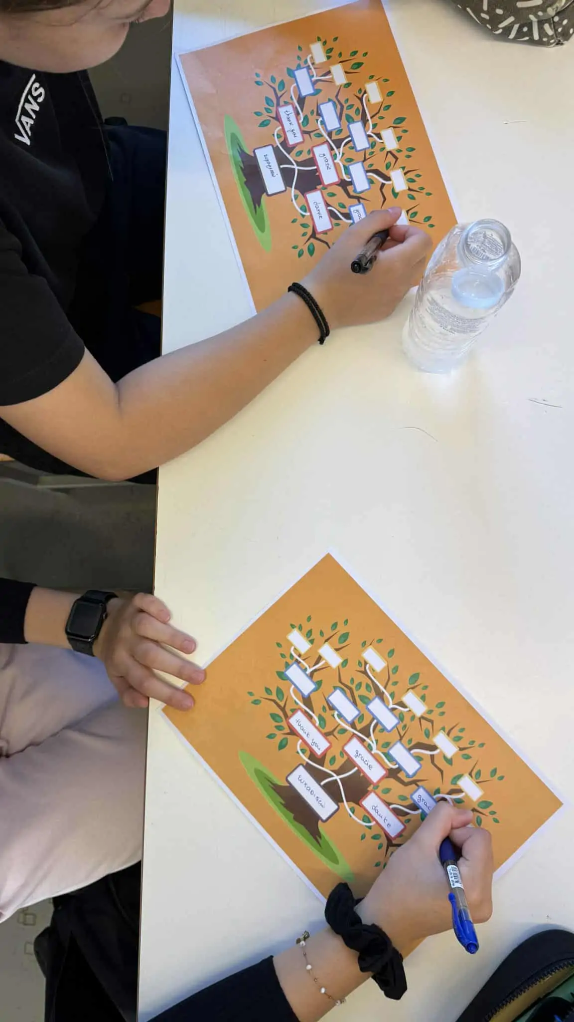 Στα Γερμανικά, στην Α΄ Λυκείου, η δραστηριότητα ξεκίνησε με την παρουσίαση του «Δέντρου των Γλωσσών», μέσα από το οποίο οι μαθητές γνώρισαν την ποικιλία, τις συγγένειες και τις αλληλεπιδράσεις των γλωσσών. Οι μαθητές μοιράστηκαν τις αγαπημένες τους λέξεις σε διάφορες γλώσσες, εξηγώντας το προσωπικό ή συναισθηματικό τους νόημα, και δημιούργησαν ένα συμβολικό “Δέντρο των Λέξεων”, όπου ανάρτησαν σε φύλλα τις επιλογές τους, σχηματίζοντας έναν πολύχρωμο κορμό γεμάτο σκέψεις, συναισθήματα και έμπνευση. Ακολούθησε συζήτηση γύρω από τη σημασία εκμάθησης μιας ξένης γλώσσας.