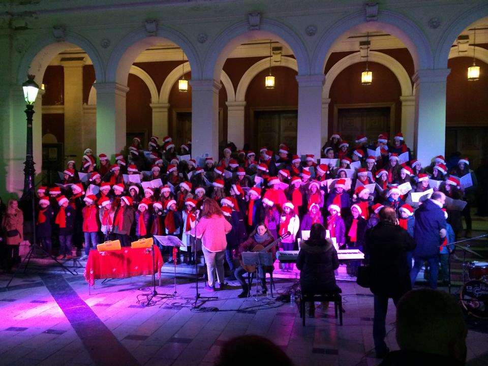 150 μαθητές και απόφοιτοι των Αρσακείων Σχολείων Πατρών υπό την καθοδήγηση τής κ. Λ. Λυμπεροπούλου, κ. Π. Σουβαλιώτη, καθηγητριών Μουσικής και κ. Σπ. Σκιαδαρέση καθηγητή Βυζαντινής Μουσικής, ένωσαν τις φωνές τους και απέδωσαν με μοναδικό τρόπο χριστουγεννιάτικα τραγούδια και ύμνους στις σκάλες τού Δημοτικού Θεάτρου “Απόλλων”, στην Πλατεία Γεωργίου. Η εκδήλωση πραγματοποιήθηκε στο πλαίσιο των χριστουγεννιάτικων εκδηλώσεων του Πολιτιστικού Οργανισμού του Δήμου Πατρέων.