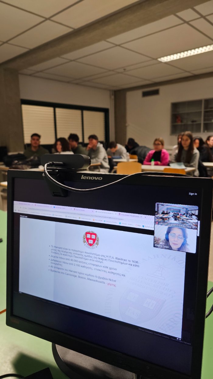 Την Τρίτη 14 Ιανουαρίου 2025, στην αίθουσα προβολών, η Β΄ τάξη τού Αρσακείου Λυκείου Πατρών είχε την ευκαιρία να επισκεφθεί διαδικτυακά την ψηφιακή βιβλιοθήκη τού Κέντρου Ελληνικών Σπουδών τού Harvard (ΚΕΣ). Το κέντρο, που λειτουργεί στο Ναύπλιο, αναδεικνύεται ως το μοναδικό μέρος στην Ελλάδα που παρέχει πλήρη πρόσβαση στην βιβλιοθήκη, η οποία περιέχει έναν μεγάλο και αναλυτικό κατάλογο συγγραμμάτων κορυφαίων ερευνητών τού κόσμου.
