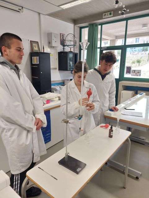 Έτσι, οι μαθητές τής Β΄ τάξης τού Αρσακείου Λυκείου Πατρών, στα πρότυπα εργαστήρια που διαθέτει το Σχολείο μας, μελέτησαν τον όξινο χαρακτήρα των καρβοξυλικών οξέων. Η συγκεκριμένη εργαστηριακή άσκηση ονομάζεται “τιτλοδότηση οξικού οξέος από πρότυπο διάλυμα ανθρακικού νατρίου” και πραγματοποιήθηκε υπό την καθοδήγηση τού κ. Ν. Γιαννακόπουλου, χημικού, MSc-MEd. To οπτικό αποτέλεσμα είναι η αλλαγή τού χρώματος τού δείκτη (π.χ. φαινολοφθαλεϊνη) και δευτερευόντως η παύση τής έκλυσης (παραγωγής) αερίου διοξειδίου τού άνθρακα με τη μορφή φυσαλίδων.