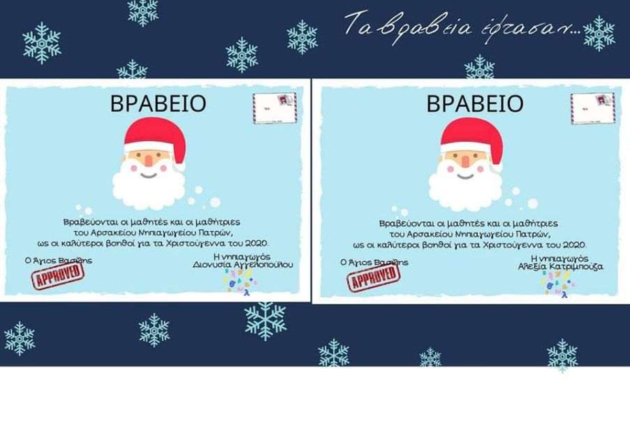 Επίσης, πήραν βραβείο συμμετοχής στις αποστολές τους ως βοηθοί τού Άγιου Βασίλη…