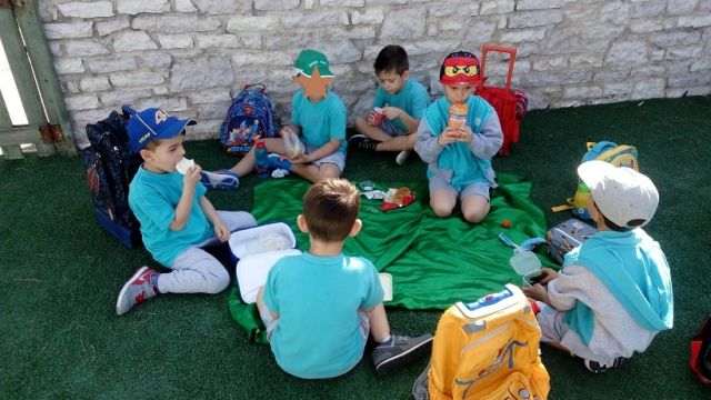 Με αφορμή τη γιορτή των λουλουδιών έκαναν πικ νικ στην αυλή και στη συνέχεια κατασκεύασαν πρωτομαγιάτικα στεφάνια για να στολίσουν το δωμάτιό τους.