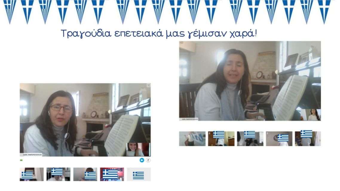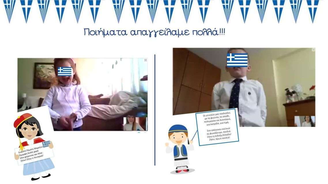Σημαίες γαλανόλευκες πλημμύρισαν τις ψηφιακές τάξεις και οι μαθητές με καμάρι απήγγειλαν ποιήματα, τιμώντας τους ήρωες.