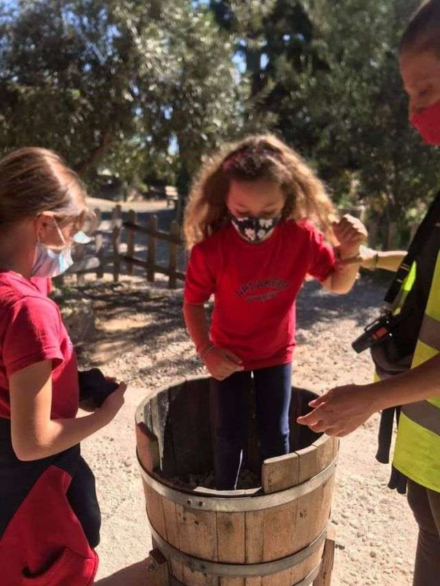 Επίσης, επισκέφθηκαν το οινοποιείο, όπου γνώρισαν τη διαδικασία παραγωγής και εμφιάλωσης κρασιού, πάτησαν σταφύλια στο παραδοσιακό ξύλινο πατητήρι και έφτιαξαν μουστοκούλουρα.