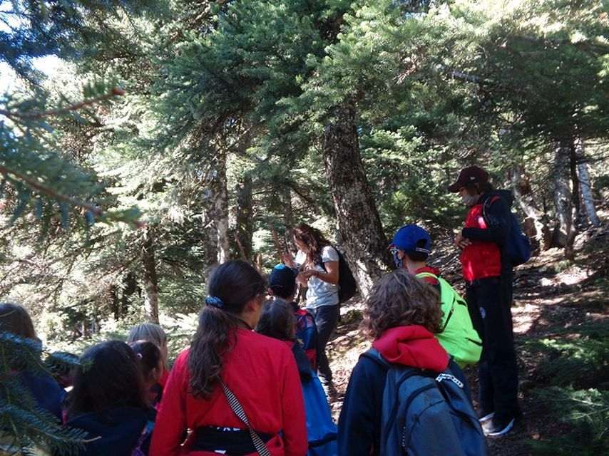 Κατά την πεζοπορία τους στα μονοπάτια τού δάσους άκουσαν το κελάηδημα των πουλιών και παρατήρησαν διάφορα φυτά τής μεσογειακής βλάστησης, όπως το πουρνάρι, την πεύκη, τη βελανιδιά, το έλατο και τον οξύκεδρο.