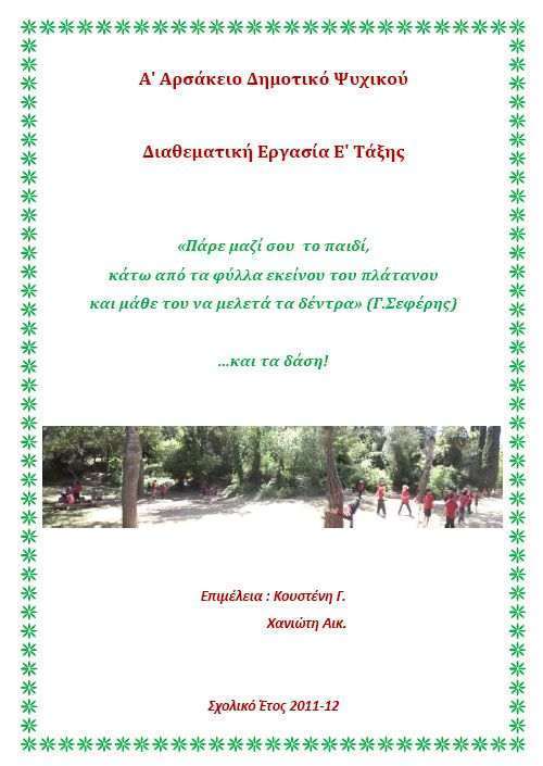 Οι μαθητές τής Ε΄ τάξης τού Α΄ Αρσακείου Δημοτικού Ψυχικού κατά τη διάρκεια τής σχολικής χρονιάς 2011-2012 συμμετείχαν στην εκπόνηση τού διαθεματικού προγράμματος «Τα δάση και οι εθνικοί δρυμοί τής πατρίδας μας».