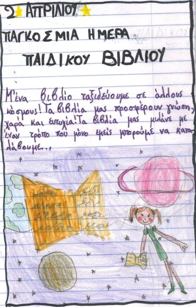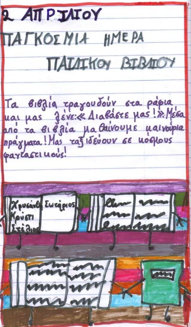 «Τα βιβλία μάς μαγεύουν, μας φωτίζουν και μας ενώνουν!»… «Τα βιβλία μάς εμπνέουν!»… έγραψαν οι μαθητές τής Γ΄ τάξης τού Α΄ Αρσακείου Δημοτικού Ψυχικού, θέλοντας να στείλουν το δικό τους μήνυμα για τη γιορτή τού βιβλίου.