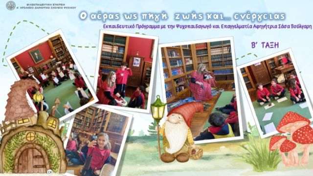 Το μοναδικό αυτό ταξίδι με τις εντυπωσιακές αφηγήσεις τής γνωστής παραμυθούς πραγματοποιήθηκε στο πλαίσιο τής δράσης τής τάξης μας “Ο αέρας ως πηγή ζωής και… ενέργειας”.