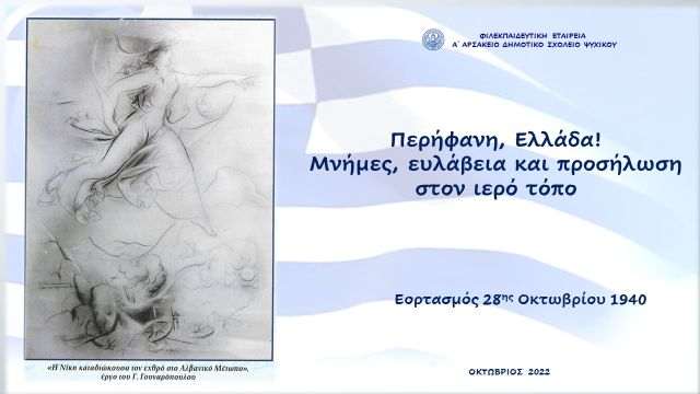 Την Τρίτη 25 Οκτωβρίου 2022 πραγματοποιήθηκε, στο θέατρο των Αρσακείων Σχολείων Ψυχικού, ο εορτασμός τής εθνικής επετείου τής 28ης Οκτωβρίου για τους μαθητές/-τριες τού Α΄ Αρσακείου Δημοτικού Σχολείου.