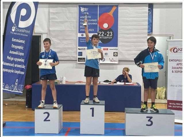 Ο μαθητής μας, που ασχολείται χρόνια με την επιτραπέζια αντισφαίριση, στο πρωτάθλημα αυτό κατάφερε να πάρει την πρώτη θέση στην ηλικιακή κατηγορία του (Μίνι παμπαίδες Under 11).