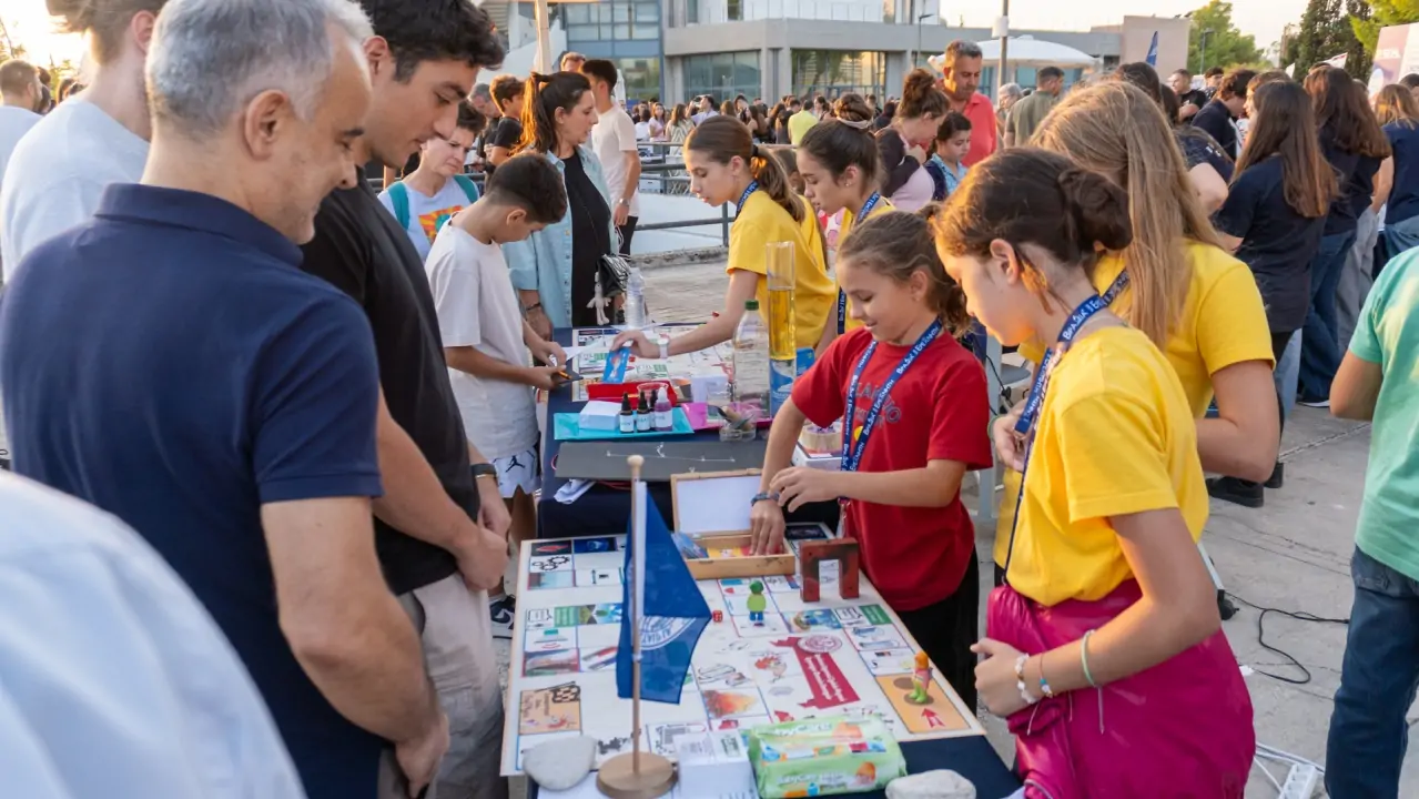 Τα παιδιά μας, με χαρά και ενθουσιασμό, εξηγούσαν στους επισκέπτες τους κανόνες τού παιχνιδιού, παρουσίαζαν τα πειράματα και ενθάρρυναν τη συμμετοχή, μετατρέποντας την επιστήμη σε μια συναρπαστική εμπειρία για μικρούς και μεγάλους.