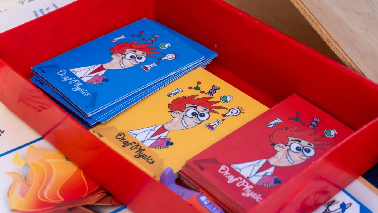 Οι μαθήτριες και οι μαθητές μας παρουσίασαν το καινοτόμο διαδραστικό επιτραπέζιο παιχνίδι Φυσικών Επιστημών με τίτλο «Γίνε και εσύ… Dr of Physics», το οποίο συνοδευόταν από εντυπωσιακά πειράματα, ενώ υπήρχε και σε ηλεκτρονική μορφή για υπολογιστές και tablet.