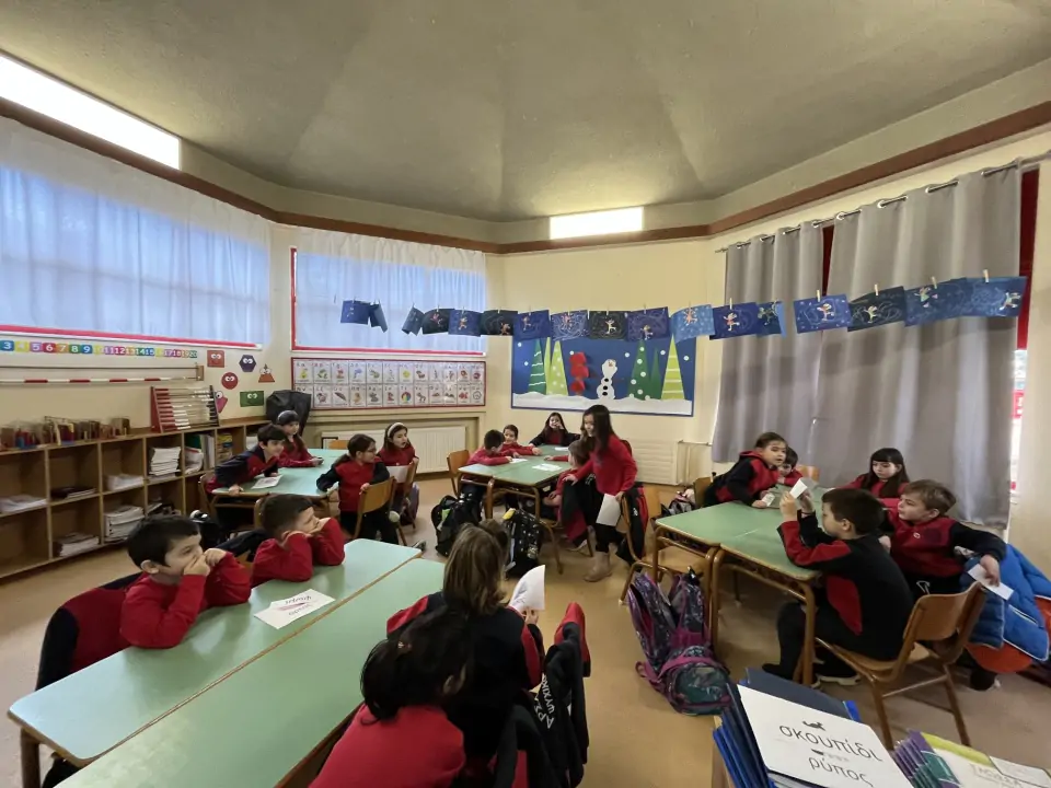 Οι μαθητές και οι μαθήτριες της Β΄ τάξης ταξίδεψαν στη μαγεία των Ελληνικών μέσα από εκπαιδευτικό βίντεο και συζήτηση για τη διαχρονική αξία της γλώσσας μας. Πάνω σε χρωματιστά χαρτόνια έγραψαν τον τίτλο «Οι λέξεις ταξιδεύουν», ανακάλυψαν και κατέγραψαν ελληνικές λέξεις που χρησιμοποιούνται σε άλλες γλώσσες, καθώς και όρους με ελληνική ρίζα στην τεχνολογία και τις επιστήμες.