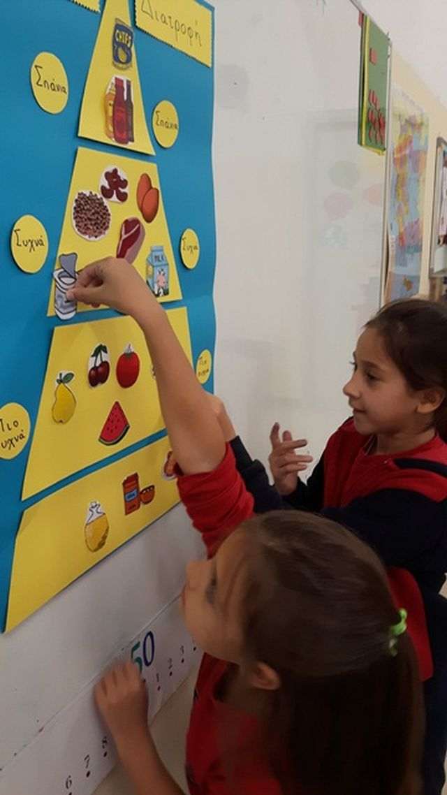 Τα παιδιά πρώτα μάντεψαν ποιο τρόφιμο τους είχε δοθεί και στη συνέχεια το κόλλησαν στη σωστή θέση στην πυραμίδα.