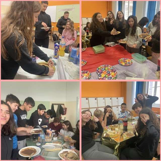 «C’est la Chandeleur! Les élèves de la classe de français de Mme Katranidou ont préparé des crêpes qu’ils ont ensuite mangées ! Ils se sont régalés»!