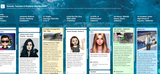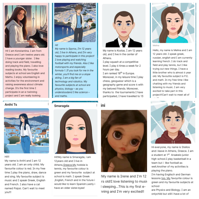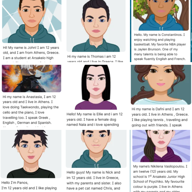 Στο πλαίσιο τής γνωριμίας με τους διδάσκοντες αλλά και τους/τις μαθητές/τριες των συνεργαζόμενων σχολείων τής Ευρώπης, οι μαθητές με τη βοήθεια της κ. Μαρίν σχεδίασαν τα Avatar τους και έγραψαν λίγα λόγια για τον εαυτό τους στο padlet τού project.