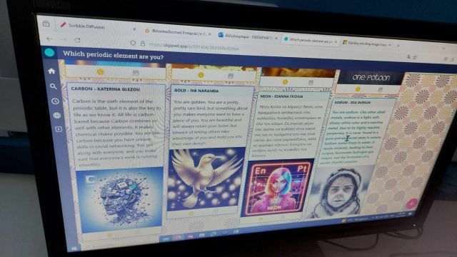Τη Δευτέρα 19 Δεκεμβρίου 2023 οι μαθητές και μαθήτριες τής Α΄ τάξης Αγγλικών τού Α΄ Αρσακείου Γυμνασίου Ψυχικού, με καθηγήτρια την κ. Μαρία Μαρίν, χρησιμοποίησαν εργαλεία τεχνητής νοημοσύνης για να βρουν ποιο χημικό στοιχείο τού περιοδικού πίνακα αντιστοιχεί στην προσωπικότητά τους και στη συνέχεια να το οπτικοποιήσουν!