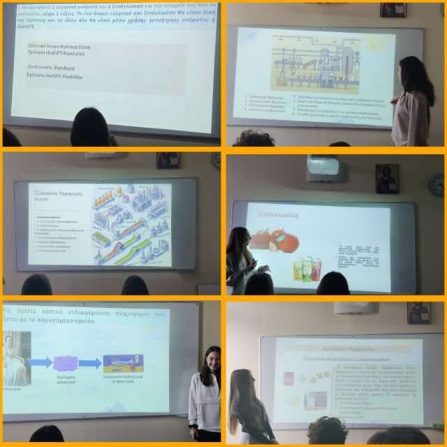 Αρχικά, κάθε ομάδα μαθητών επέλεξε μια παραγωγική μονάδα και ανέλαβε να διερευνήσει τον τρόπο λειτουργίας της. Στη συνέχεια τα παιδιά εργάστηκαν ατομικά, παρουσιάζοντας τα ζητούμενα τής έρευνάς τους μέσω PowerPoint. Μέσα από αυτή τη διαδικασία οι μαθητές και οι μαθήτριες περιέγραψαν τη ροή παραγωγής ενός προϊόντος, εντόπισαν τις απαιτούμενες πρώτες ύλες και αναζήτησαν ιστοσελίδες εταιρειών που δραστηριοποιούνται στον ίδιο τομέα. Επιπλέον, εξέτασαν πρωτότυπες συσκευασίες για να εμπνευστούν, ενώ πρότειναν ονόματα για τις δικές τους υποθετικές εταιρείες. Οι προτάσεις τους ξεχώρισαν για τη δημιουργικότητα και την ευρηματικότητά τους, καθώς αξιοποίησαν τόσο τη φαντασία τους όσο και εργαλεία Τεχνητής Νοημοσύνης, όπως το GPT, για να δώσουν στις εταιρείες τους μια μοναδική ταυτότητα.