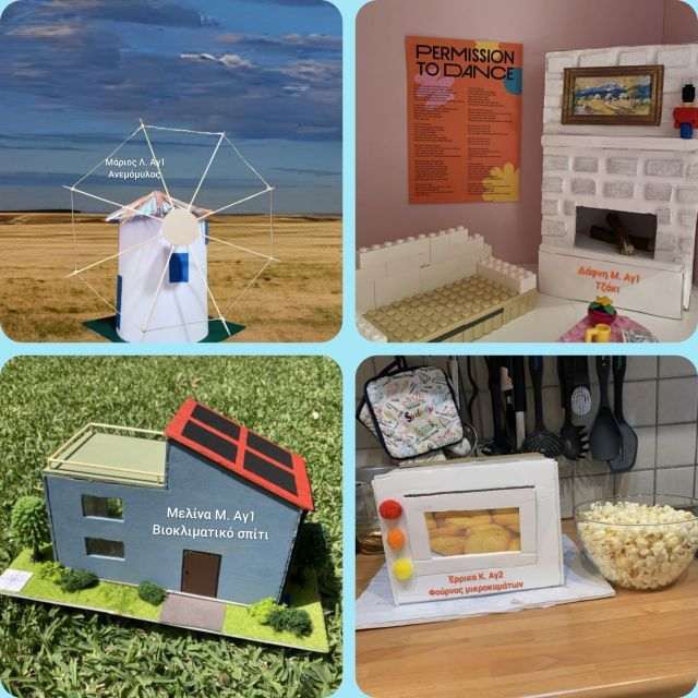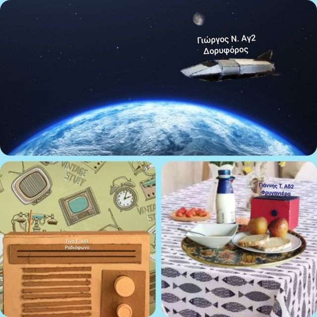 Τα τεχνολογικά επιτεύγματα που επέλεξαν να κατασκευάσουν οι μαθητές τής Α΄ τάξης ανήκαν σε διαφόρους τομείς τής Τεχνολογίας. Για τη δημιουργία των κατασκευών τα παιδιά προσπάθησαν να χρησιμοποιήσουν απλά υλικά και τεχνικές, ώστε να αναπτυχθούν τόσο οι κατασκευαστικές τους δεξιότητες όσο και η συνδυαστική τους σκέψη. Μετά την ολοκλήρωση των κατασκευών τους οι μαθητές φωτογράφισαν τα έργα τους, δίνοντας τους μια «πραγματική» διάσταση.